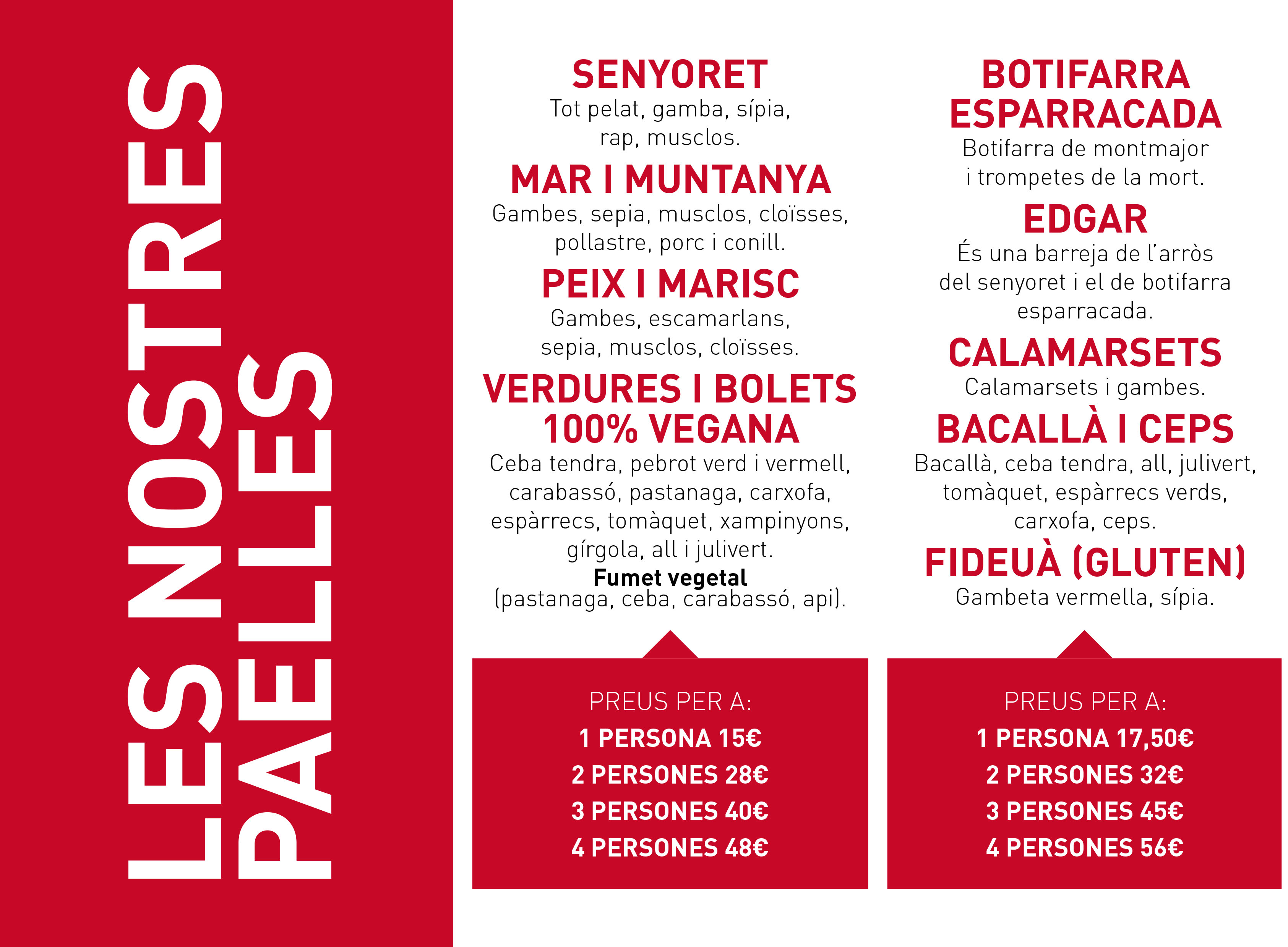 S’HA DE RESERVAR TAULA PRÈVIAMENT AL930 131 714 - 651 818 784